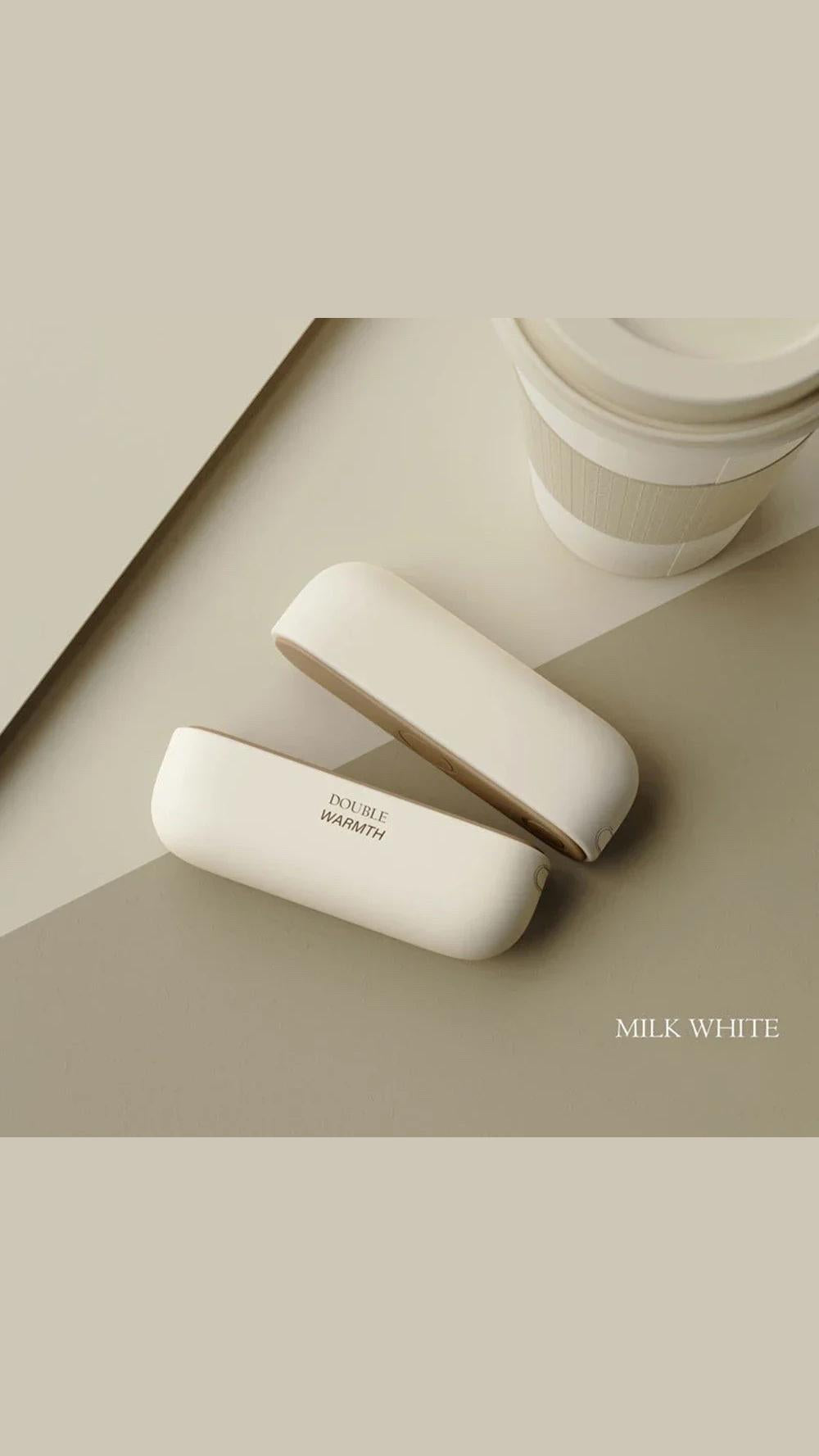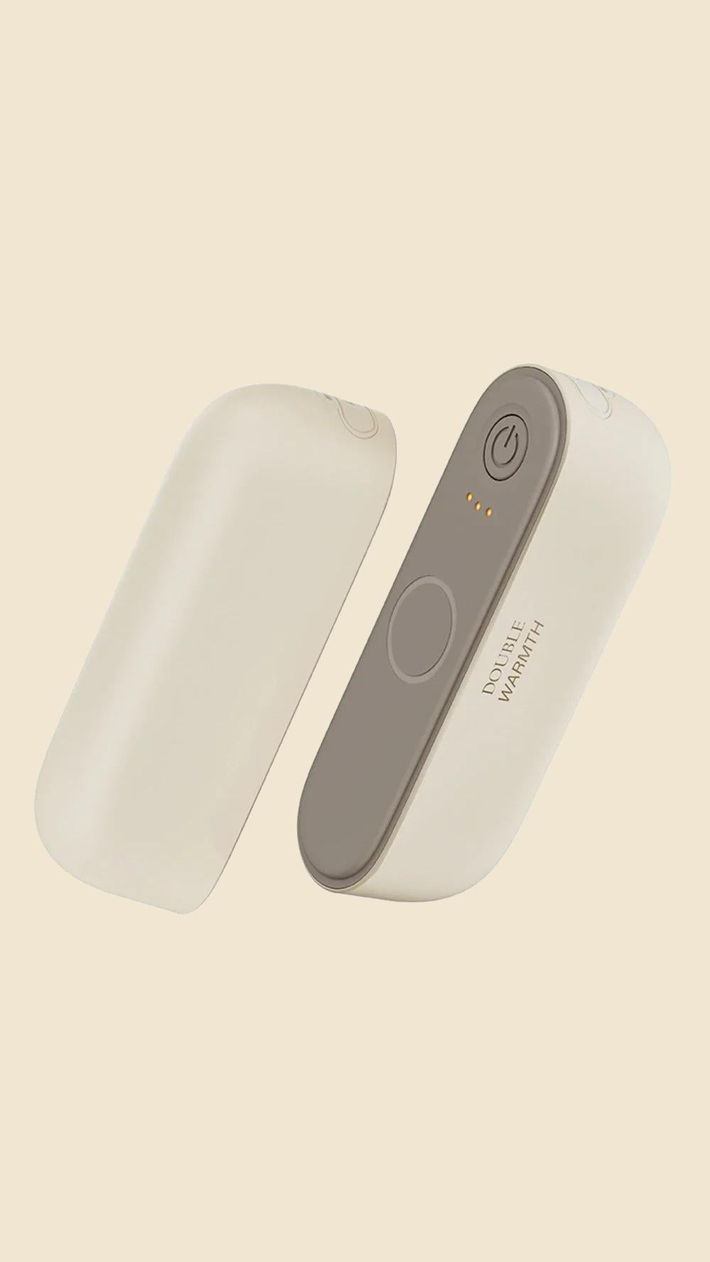 Zwei kompakte Handwärmer, die sich magnetisch verbinden – nutzbar einzeln oder als Doppelgerät.